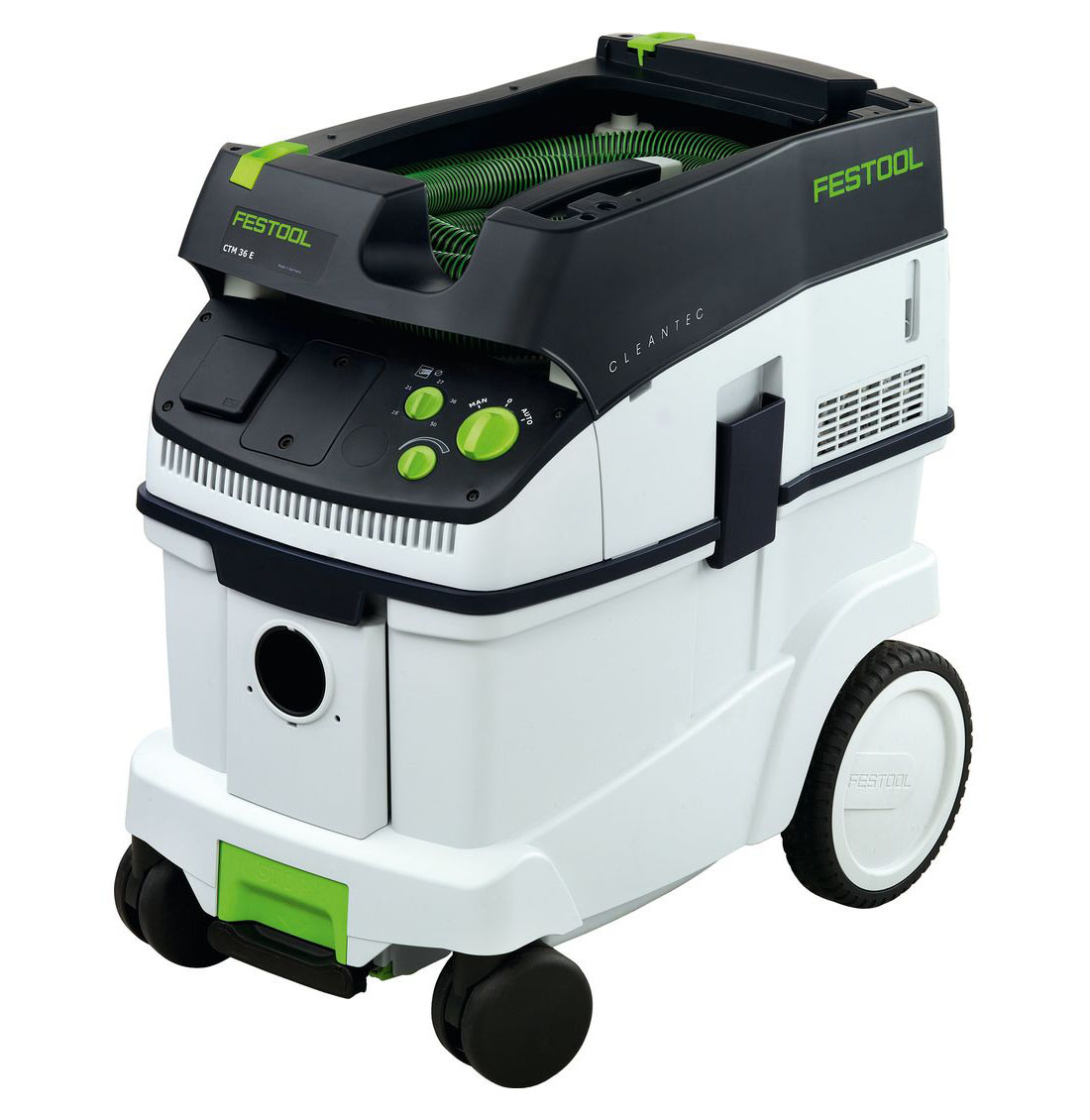 Пылесосы Festool славятся своей немецкой надежностью. Не исключение и этот универсальный аппарат Festool Cleantec CTM 36 E. Идеальное сочетание производительности для автомастерской и стройплощадки. Его пылесборник на 34 литра отлично справится с поглощением пыли при умеренных объемах работ. Пылесос Festool справляется как с сухим, так и с влажным пылеудалением и имеет разрешение для работы с пылью класса M. При работе с пылесосом от удара накопленным статическим электричеством Вас защитит функция ”Антистатик”. Поддерживает постоянно высокую мощность всасывания компактная высокомощная турбина. Обладая высокой мощностью пылесос CLEANTEC одновременно весьма экономичен благодаря оптимальному использованию мешка-пылесборника SELFCLEAN.