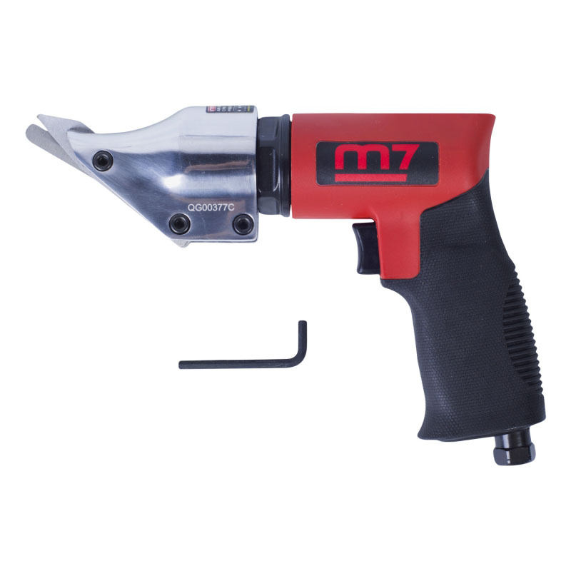 Ножницы пневматические Mighty Seven QG-202 пистолетного типа облегченные предназначены и могут применяться при проведении строительно-монтажных, сантехнических и отделочных работ. Лезвия из закаленной стали пневмоножниц позволяют сделать ровный и четкий рез стальных, алюминиевых и пластмассовых листов толщиной 1,2 мм.