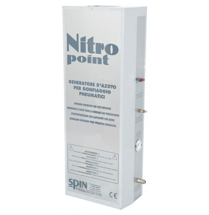 Генератор азота Spin Nitropoint 20 для накачки колес грузовых автомобилей. Производительность 20000 л/час при давлении 10 бар, 24000 л/час при давлении 12,5 бар. Чистота азота 95%. В комплекте с пистолетом для накачки/выкачивания. Без ресивера.